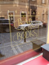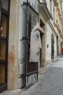 We paid the check and once again walked around the Easter market, Mom and I picked up a few souvenirs before we headed down a side alleyway to get out of the main fray, we were headed toward a bar that Kate had heard about but that wasn’t open so we walked past in until we came upon another outside café where we took over one umbrella covered table. We had a few rounds of drinks and I had my first experience with the difficulty of the Czech language when I headed inside to the bathroom and was presented with two words I had never seen before, no pictures no other clues. I chose one at random (the one to the left) and got in and out of there as fast as possible in case I had chosen wrong. Fortunately, a quick google search back at the table told me my hunch had been correct.